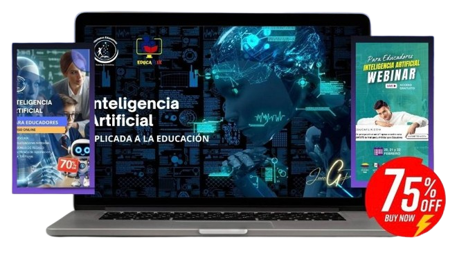 Curso grabado con acceso de por vida a 8 Módulos con más de 60 lecciones con el paso a paso para dominar herramientas de la inteligencia artificial y aplicarlas en el ambito educativo: